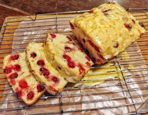 Enjoy the delightful combination of citrusy orange and tart cranberry flavors in every bite of this moist and tender loaf cake!