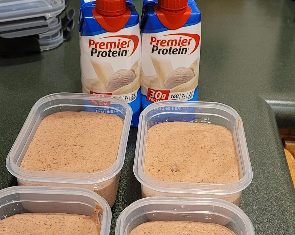 Just made this. I poured it into 4 containers. I figured it out to be 2pts a container. It also gives you the protein everyone wants. I know some people don’t like primer protein but I would think any vanilla protein shake would be good. So yummy!