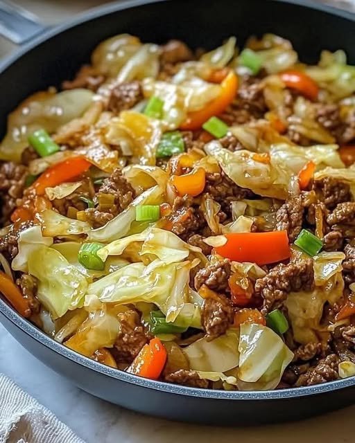 Busy weeknights call for this quick and easy stir-fry! Packed with protein and crunch, it’s a fusion of hearty beef, crisp cabbage, and aromatic garlic and ginger. A splash of soy sauce and sesame oil ties it all together, making this dish a healthy and flavorful favorite.