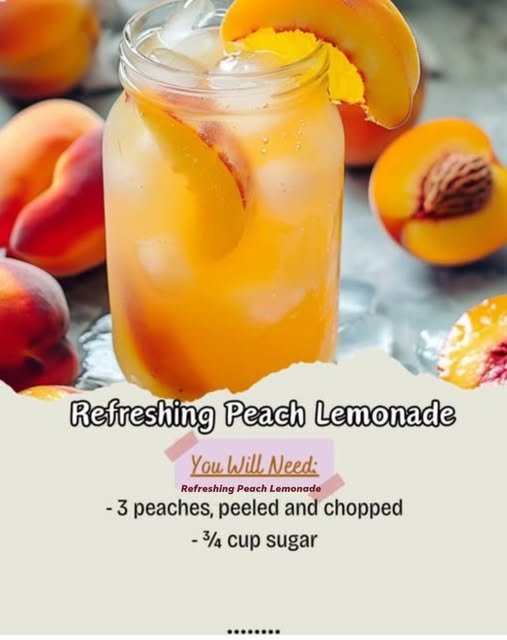 A fresh and fruity homemade lemonade featuring ripe peaches and freshly squeezed lemon juice, perfect for hot summer days.