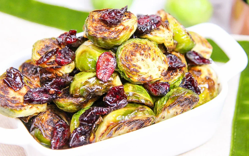 This Roasted Brussels Sprouts with Cranberries recipe is a festive, healthy side dish perfect for Christmas and holiday meals. Crispy roasted Brussels sprouts are tossed with sweet dried cranberries and finished with a light glaze for the perfect balance of savory and sweet. It’s simple, colorful, and pairs beautifully with turkey, chicken, or ham.