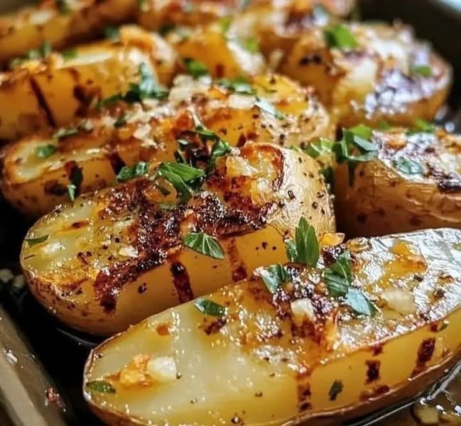 Bake for 25-30 minutes, or until the potatoes are golden brown and tender, flipping them halfway through the cooking time for even browning.