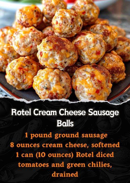 7. Serve the Rotel Cream Cheese Sausage Balls warm as a delicious appetizer or party snack.