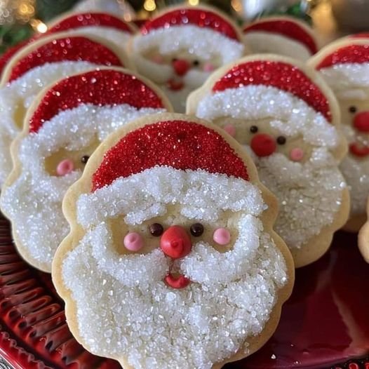 14).Once the Icing Has Set, Use a Small Dot of White Icing to the Attach Pink Nonpareil for Cheeks, Black Nonpareil for Eyes and a Red Candy or Mini M&M for Santa’s Nose.