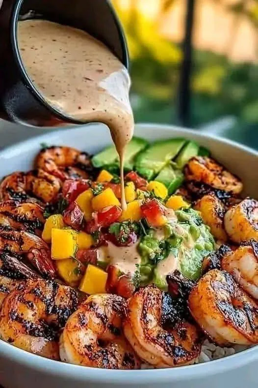 Colorful, flavorful, and nutrient-packed — this bowl has it all: juicy shrimp, creamy avocado, fresh mango salsa, and a zesty lime-chili drizzle. Easy to customize and loaded with bold tropical flavor.