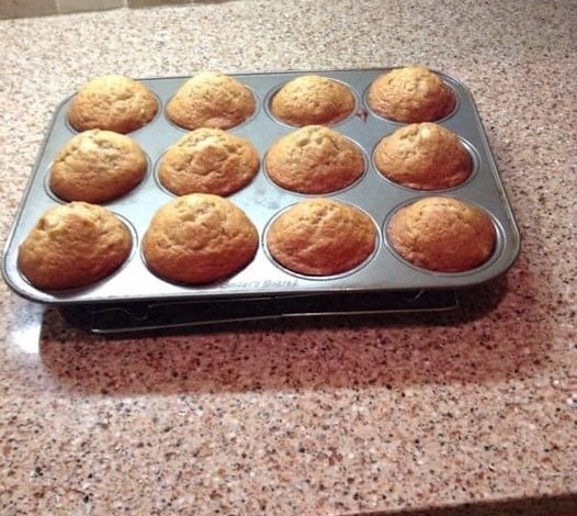 - Preheat oven to 350 degrees and spray bread pan (9×5 or 8×4)or a 12 muffin tin with non stick cooking spray