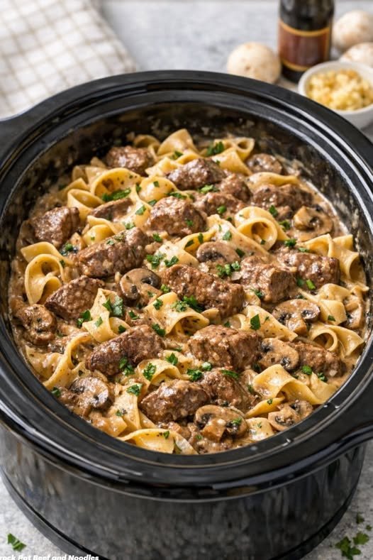 This recipe is designed for simplicity and flavor. The slow cooker does most of the work while transforming an affordable cut of beef into something incredibly tender and satisfying. By the time dinner rolls around, all that’s left is adding the noodles and stirring everything together.