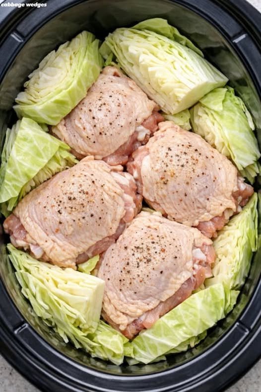 Cover the slow cooker with the lid and cook on LOW for 6 to 7 hours, or on HIGH for about 3 to 4 hours, until the chicken is very tender and cooked through (reaching 165°F in the thickest part) and the cabbage is soft and buttery at the edges but still holds together in wedges.