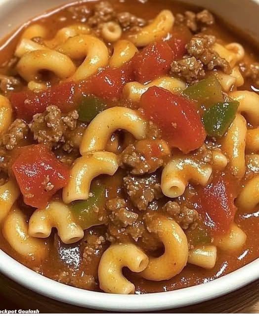 This Crockpot Goulash is classic American comfort food—hearty ground beef simmered in a rich, herb-infused tomato sauce. Slow-cooking the peppers and aromatics with beef broth and tomatoes builds a deep, savory flavor that beats any stovetop version. Adding the pasta and peas at the end keeps the macaroni perfectly al dente and the peas vibrant and sweet.