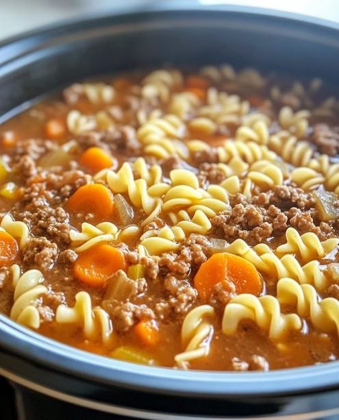 For a twist, you can add a can of drained kidney beans or corn to the soup for extra texture and nutrition. Swap out the ground beef for ground turkey or chicken for a lighter version. If you’re gluten-free, substitute the egg noodles with gluten-free pasta. Additionally, you can add a dash of Worcestershire sauce or soy sauce for a deeper umami flavor.