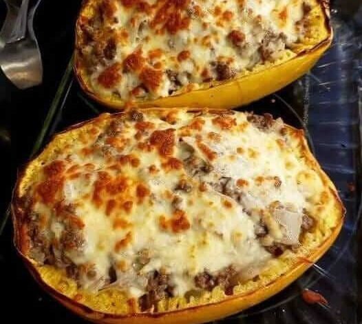 - For about TEN minutes, return the lasagna spaghetti squash boats to the oven, until the cheese melts.