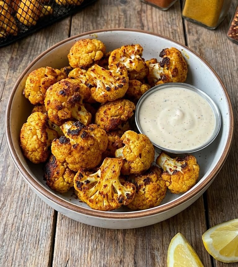 In a bowl, toss cauliflower with olive oil (if using) and all spices until evenly coated. -