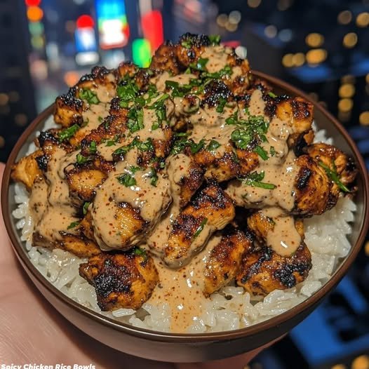 Spicy Chicken Rice Bowls with Chili Garlic Sauce 🍗🌶️ Protein 36g