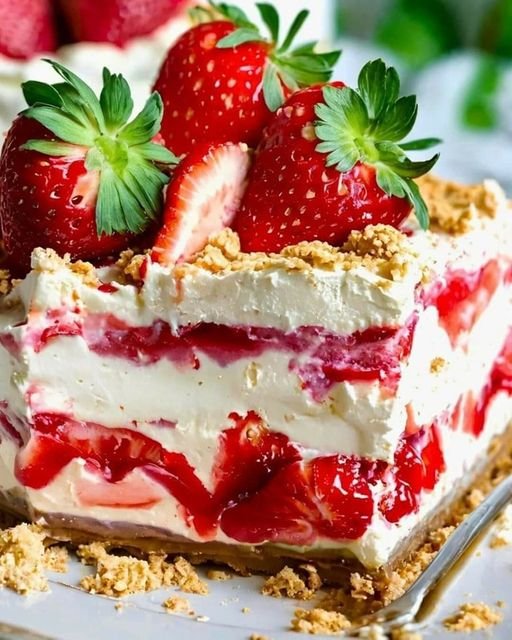 3. Set aside 5-6 whole strawberries for garnish. Wash, hull, and slice the remaining strawberries. Layer over the cream cheese mixture.