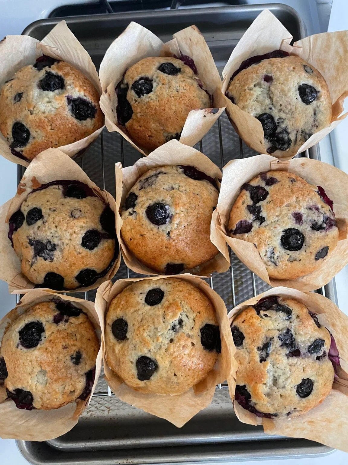 - Remove the muffins from the oven and allow them to cool in the pan for a couple of minutes before transferring them to a wire rack to cool completely.