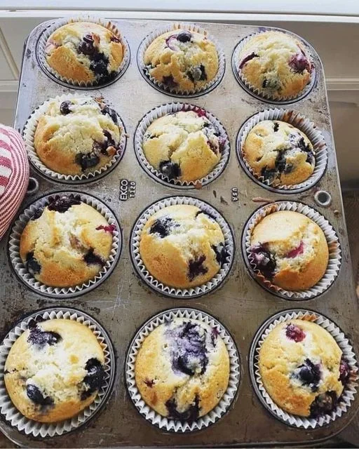 The preparation is quick and straightforward, with a batter that comes together effortlessly. The choice to fold in fresh or frozen blueberries introduces bursts of juicy goodness, creating a delightful contrast to the muffin’s texture. The baking process yields moist and fluffy muffins, their golden tops inviting with the promise of a burst of blueberry goodness in every bite.