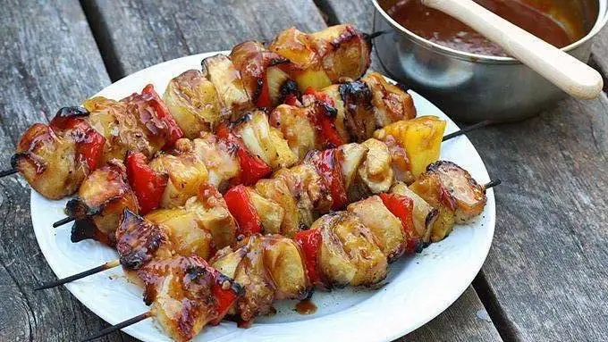 3Lightly oil the grill grate. Thread chicken and pineapple alternately onto skewers. Grill 15 to 20 minutes, turning occasionally, basting with bbq sauce or until chicken juices run clear.