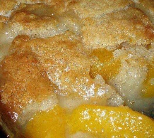 5. Bake in the preheated oven for about 30-35 minutes or until the top is golden brown, and the cobbler is cooked through.